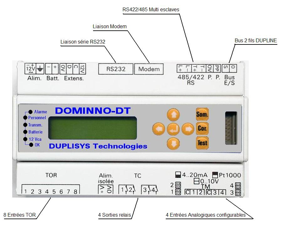 L'automate DOMINNO-DT se présente sous forme d'un boîtier compacts et modulaire qui permet à l'utilisateur de créer sa propre configuration selon ses besoins et les contraintes d'exploitation. Cette architecture autorise l'ajout rapide de tout nouveau module sans remise en cause de l'existant, ni l'arrêt de l'installation à télégérer.